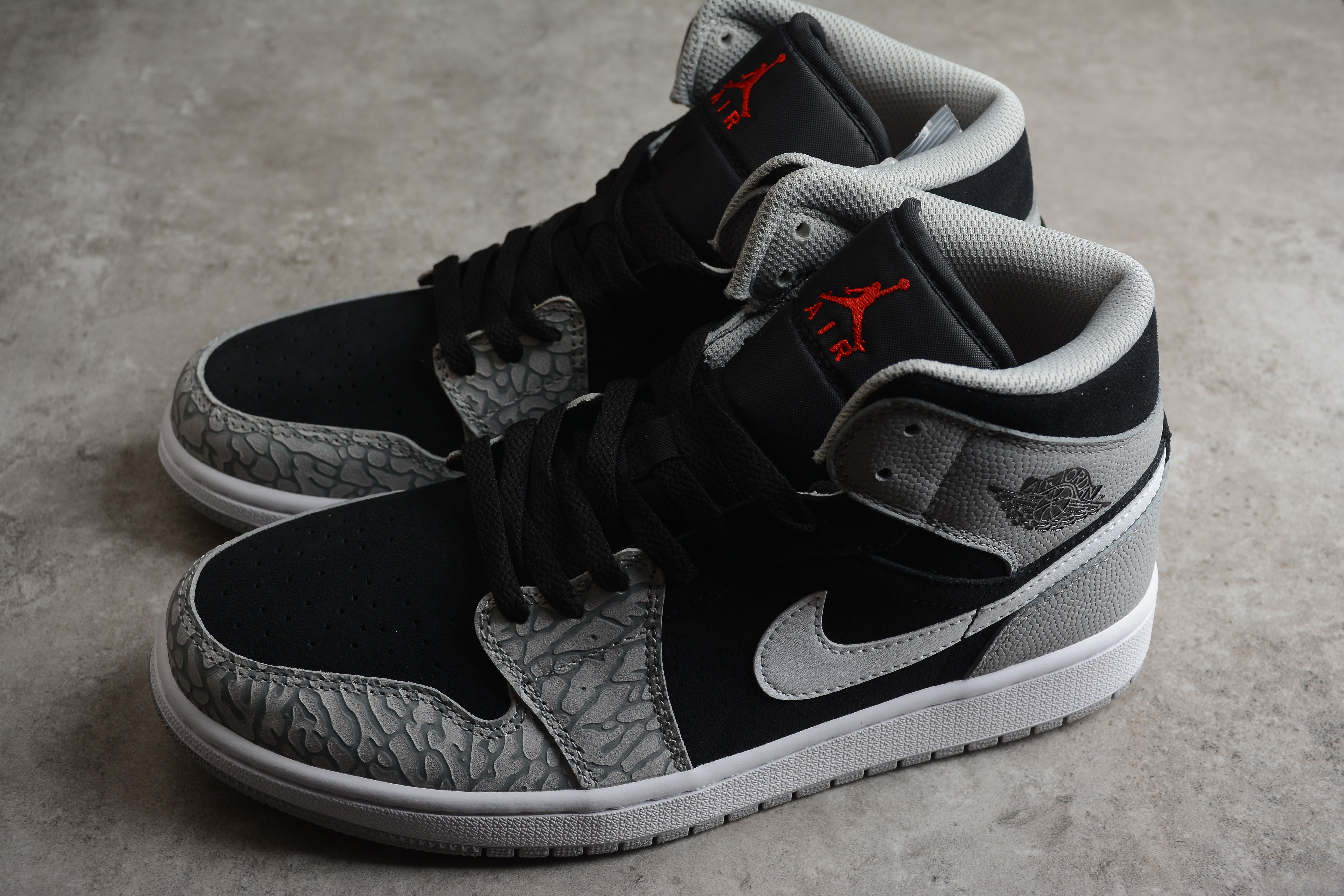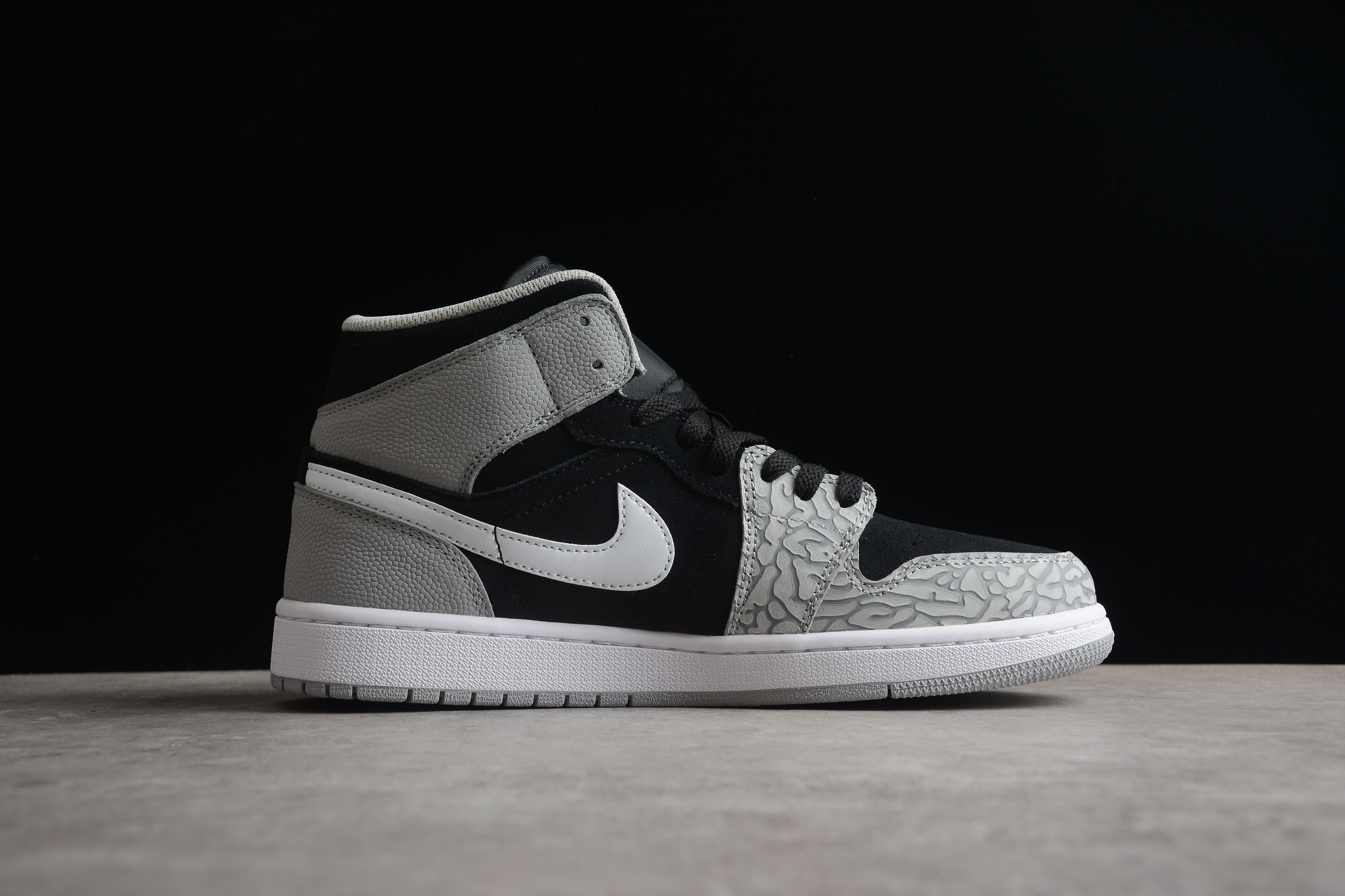 - Product Name: Air Jordan 1 Mid SE GS Elephant Toe Sneakers Grey Black White